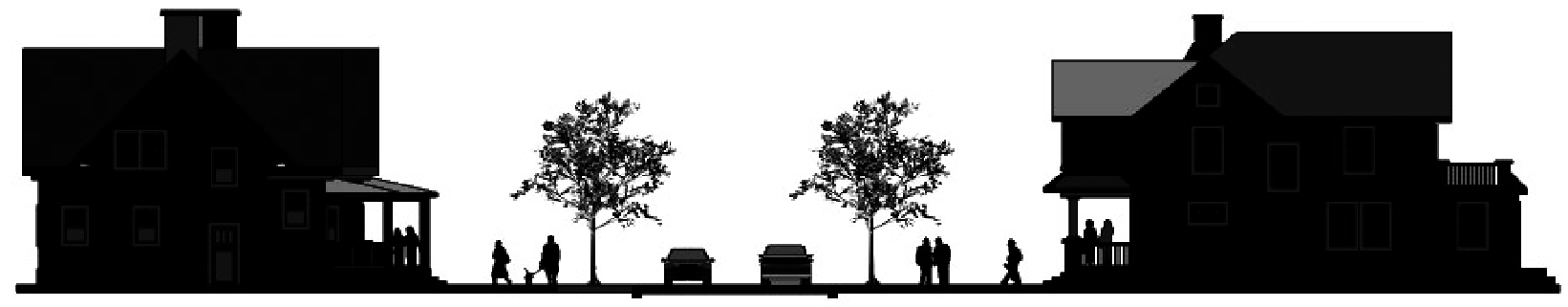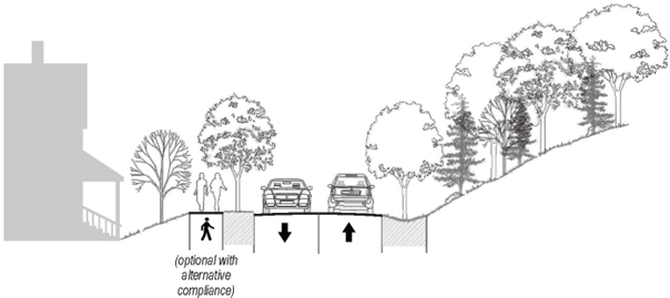 Street Design Includes Multiple Elements: The roadway or vehicle travel surface, which may include an improved shoulder or bicycle lane; curb and gutter, swale or other stormwater conveyance; planted strips and landscaping as required; sidewalks, greenways or other pedestrian facilities such as crosswalks as required.