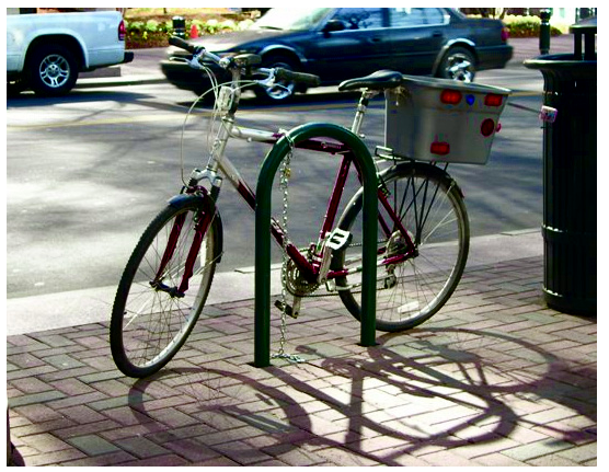 Where bicycle racks are used, "Inverted U" type racks or other racks that support the bicycle at two points on the bicycle frame are required.