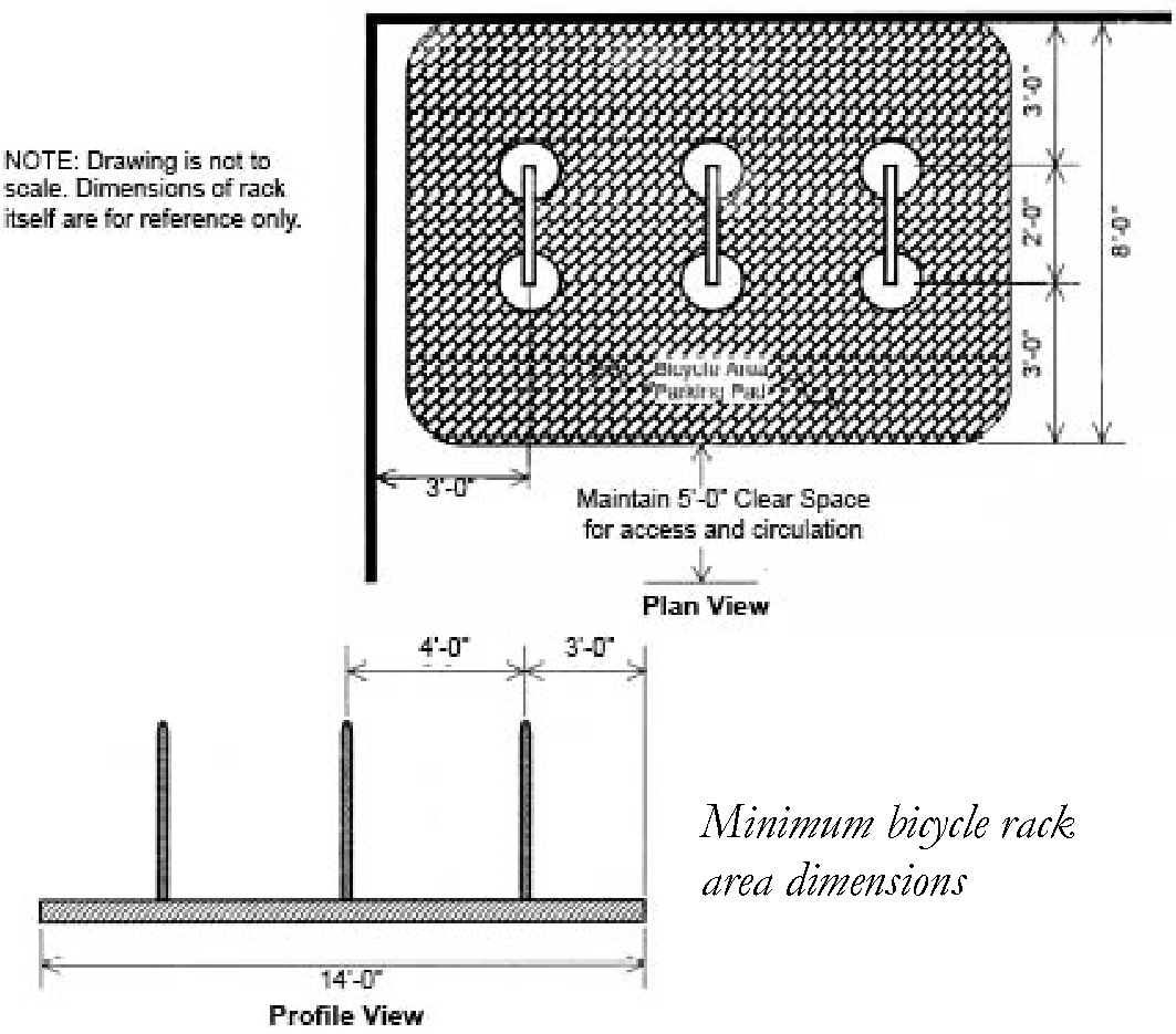 Each bicycle parking space shall provide 6 feet by 2 feet in area per bicycle plus the area needed for access.