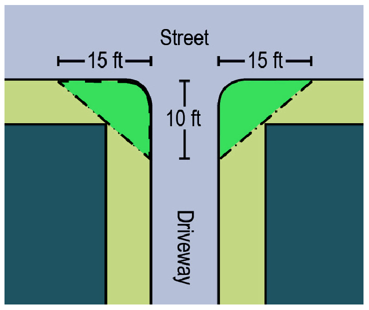 Sight areas are triangular areas formed by a ten-foot side measured along the edge of the driveway approach and a fifteen-foot side measured along the edge of the traveled way.