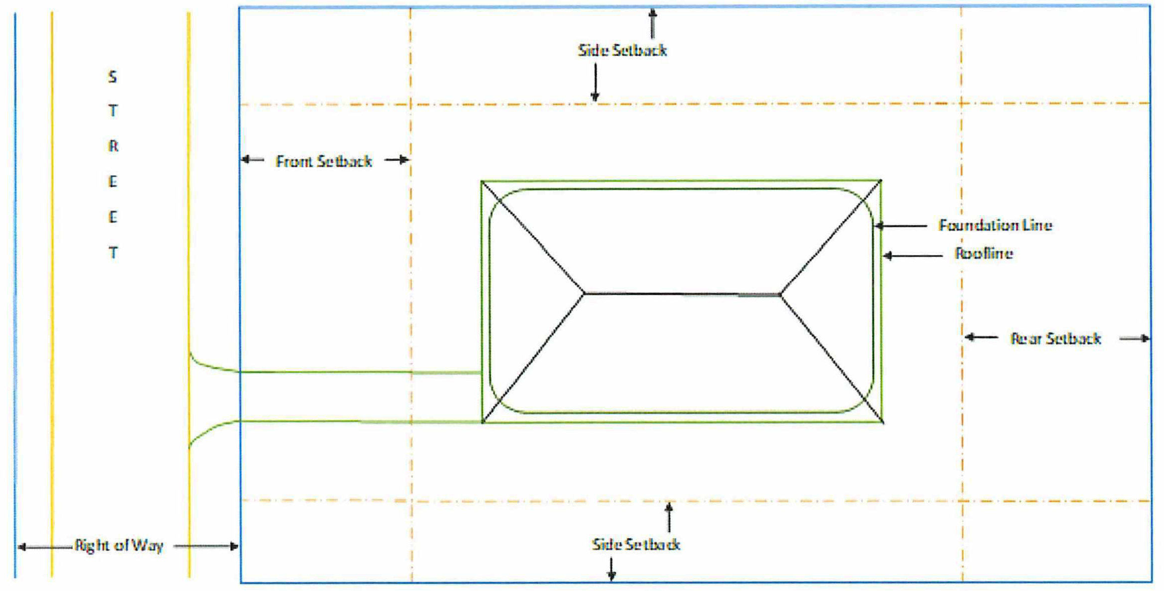 Setback. The minimum required horizontal distance between the outside wall of any structure and the lot lines of the lot on which it is located (see figure below).