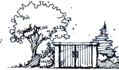 Materials: Garden/decorative walls may be of brick, stone, wrought iron, or stucco matching the principal building. Retaining walls shall be wood, brick, stone or stucco. Front yard fences shall be wood picket, wrought iron or materials similar in appearance and durability. Side and rear yard fences may be green or black chain link, wood, wrought iron, or similar material.