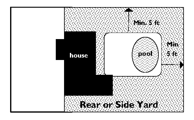 Pools, as defined above, shall be set back a minimum of five feet from all side and rear property lines.