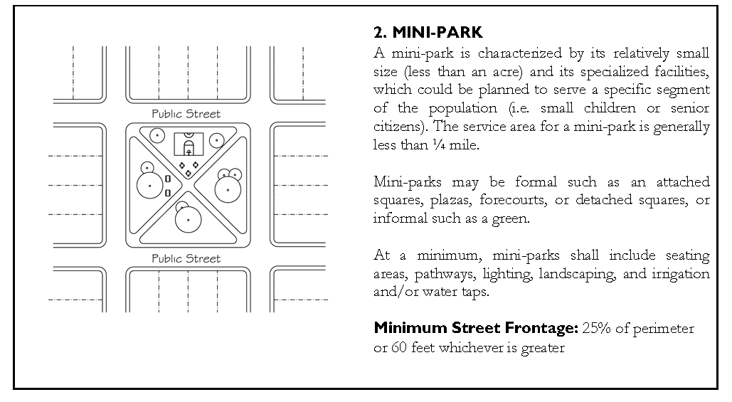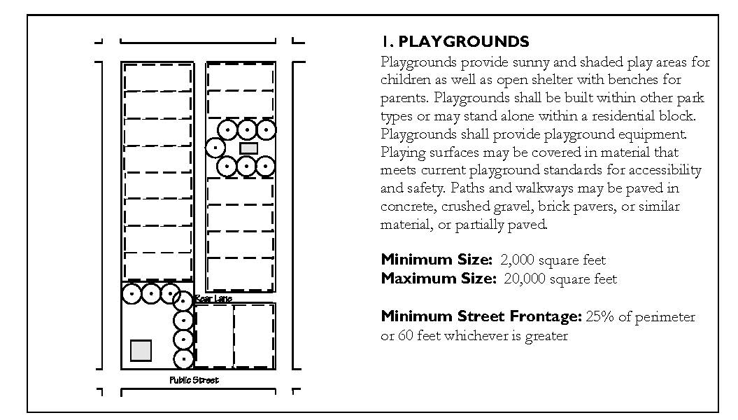 Paved Walkways: All park spaces shall incorporate hard-surface (non-gravel) walkways into the overall design.