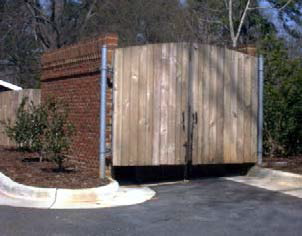 Screening of Open Storage, Above Ground Utilities, and Dumpsters: Any open storage of merchandise, equipment, materials or goods (other than those on display for retail sales), above ground utilities, loading areas, and dumpsters areas shall be screened from view from any street right-of-way. These areas shall include adjacent planting islands and shall be landscaped with an evergreen screen and fully enclosed in a fence or wall of at least six feet in height (see also Section 4.3, Containment Areas for Trash and Recyclables).