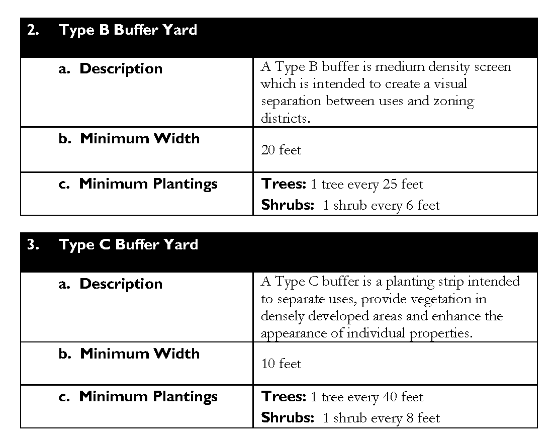 Buffer yards are planting areas located parallel to the side and rear lot lines designed to separate incompatible adjacent uses and provide privacy and protection against potential adverse impacts of an adjoining incompatible use or zoning district.