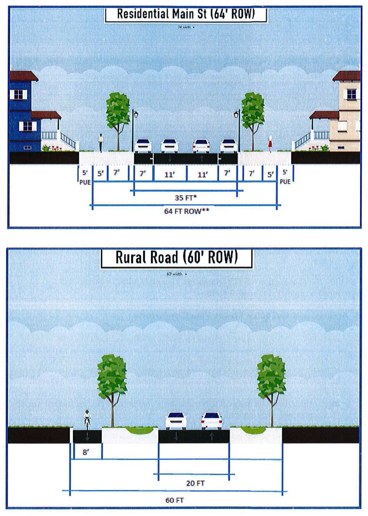 Developments in Rural Agriculture (RA) districts shall provide a multi-use pathway of a minimum eight feet in width, constructed of asphalt or similar material along one side of thoroughfare or collector road frontages or as designated on an adopted plan.
