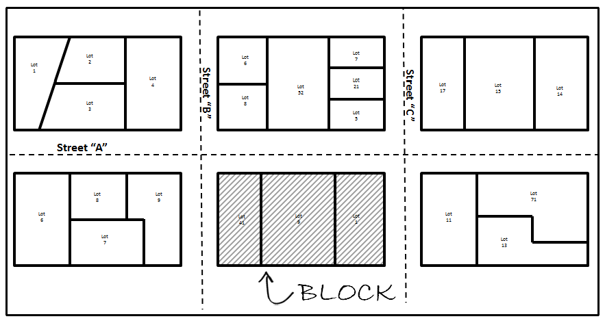 Block means a land area which consists of contiguous lots or property fronting on a street and is between two intersecting streets.