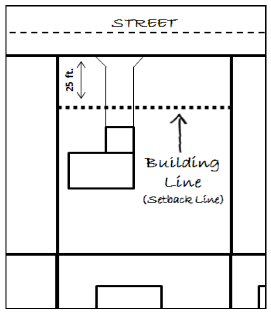 Building line or setback line means a line parallel to a street right-of-way line, or other property line established on a parcel of land or lot for prohibiting construction of a building or structure in the area between such building line and right-of-way, or other property line.