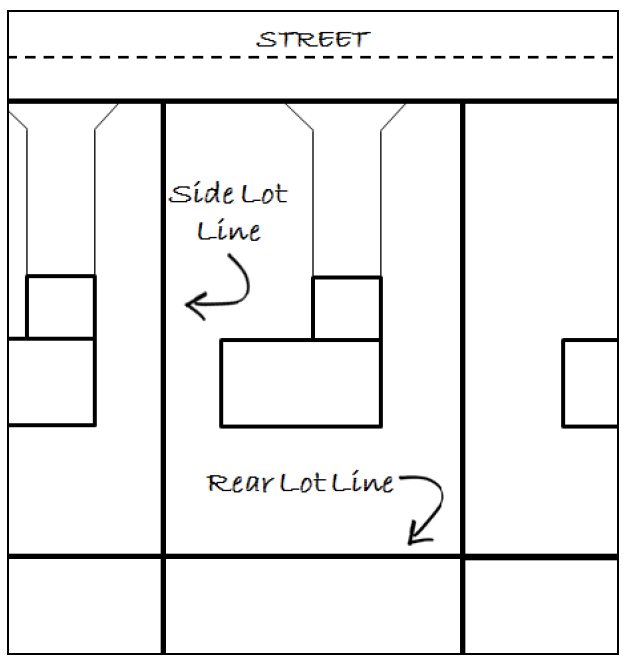 Yard, side, means a yard between the main building and the adjacent side line of the lot and extending entirely from the front building line to the rear building line.