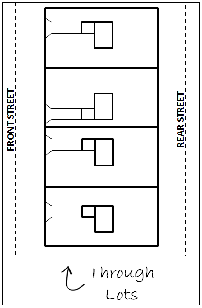 Reverse frontage. When a subdivision lot has two street frontages, one of that is a parkway, thoroughfare or collector and the other is a minor residential street, the lot will front on the minor residential street and a non-access reservation will be provided buffering the rear of the lot from the traffic artery.
