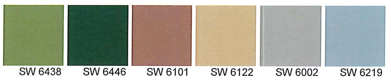 Acceptable colors are earth tone colors, including, but not limited to, the following (Sherwin Williams color code):