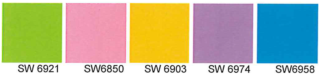 All fluorescent colors shall be prohibited. Examples of fluorescent colors include, but are not limited to, the following examples (Sherwin Williams color code):