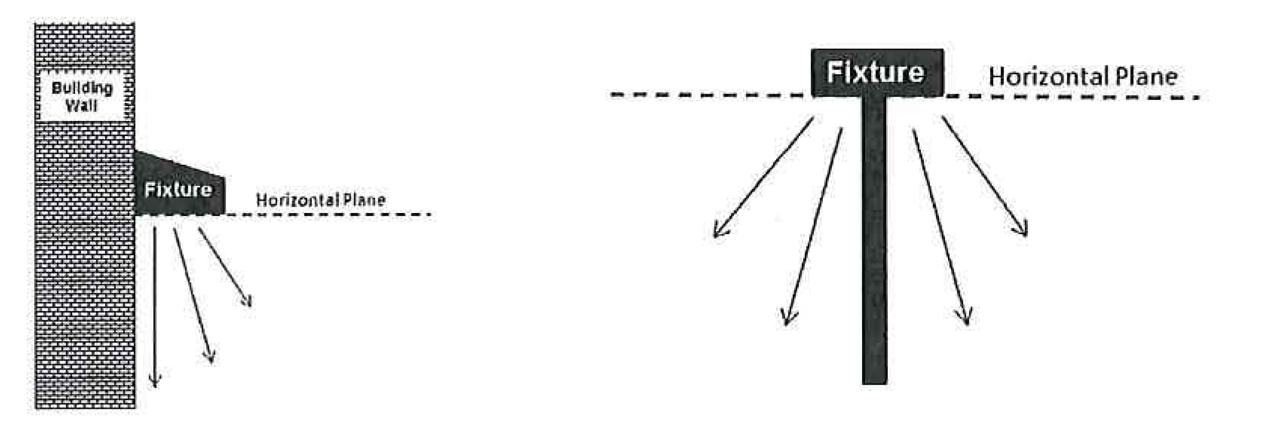 Multi-family, office, commercial and industrial developments. All new exterior lighting fixtures installed within the city for multi-family, office, commercial or industrial developments shall utilize cutoff or full cutoff designs to ensure that no light is emitted above a horizontal plane, as depicted in the images below. The replacement of fixtures within existing projects in the city shall be brought into compliance with this section. Exterior lighting shall be part of the architectural concept and all fixtures, standards and exposed accessories shall be harmonious with the building design. All exterior lighting fixtures, parking lot pole standards, and pole bases shall be black unless otherwise approved by the city.