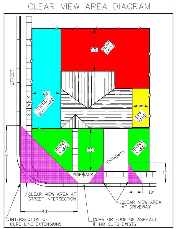 A clear view area shall be maintained at the intersection of every street, whether public or private, and at the intersection of every driveway with a public or private street. The clear view provisions are considered life safety standards and shall supersede any conflicting provisions of this title.