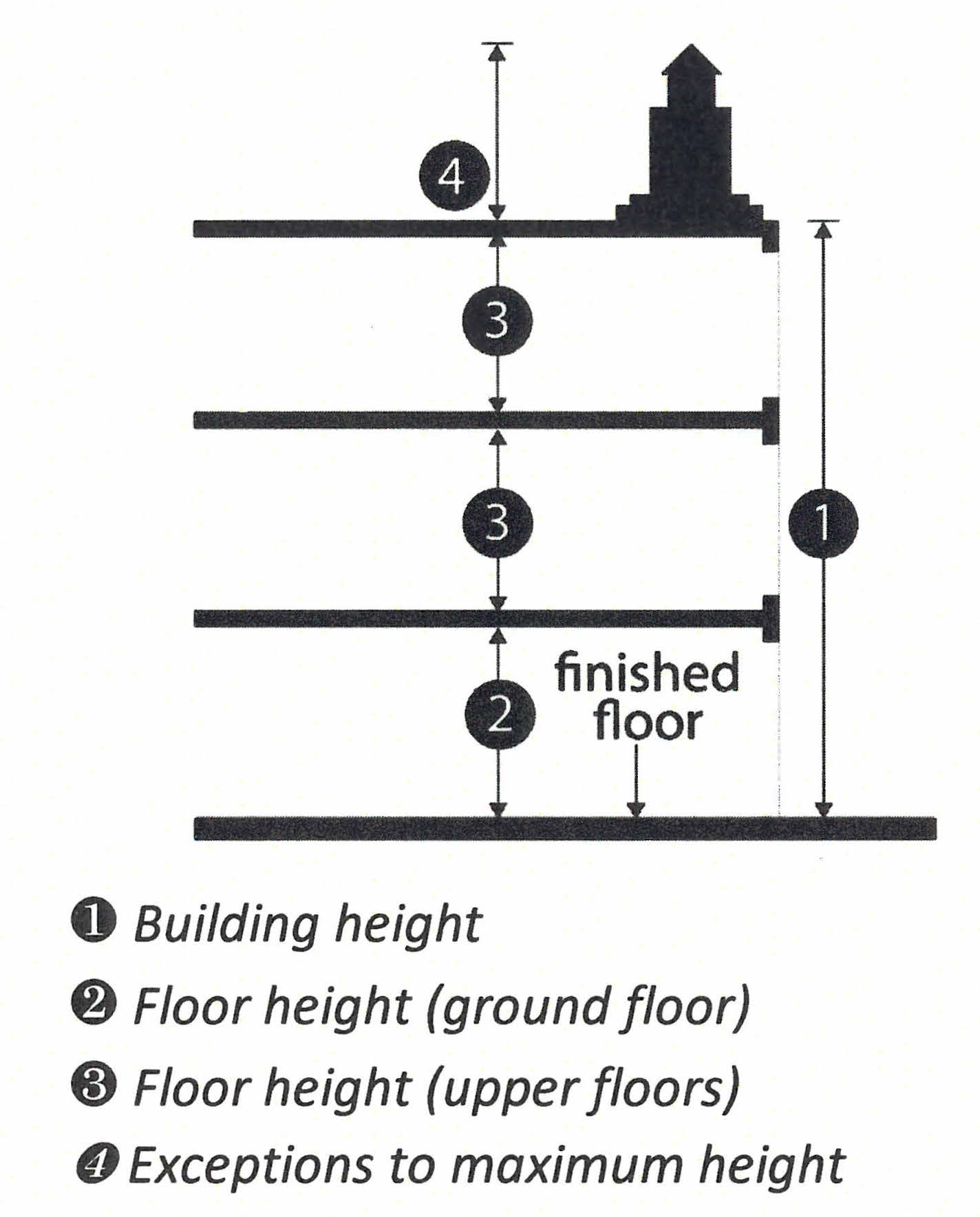 The following criteria must be met to add 20 feet of building height and another 20 percent of building coverage: