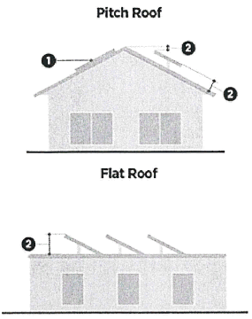 Systems on residential structures shall not extend beyond 12 inches parallel to the roof surface of a pitched roof or flat roof. Systems on nonresidential structures shall not extend beyond 36 inches parallel to the roof surface of a pitched roof or flat roof. Systems on all structures shall not extend above the highest peak of a pitched roof. Height is measured from the roof surface on which the system is mounted to the highest edge of the system.