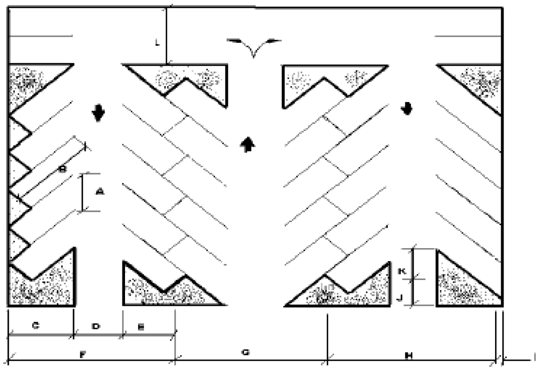 Size. Each parking space and aisle width shall not be less than the parking dimension standards depicted after subsection (j) of this section in table I, minimum space requirements, at various parking angles for self-parking facilities. If a parking aisle requires access for emergency vehicles, garbage trucks or trucks moving to or from a loading area, that parking aisle shall be at least 24 feet wide.