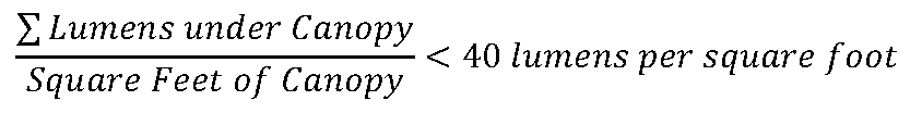 Total under-canopy output. The total light output used under service station canopies, defined as the sum of all under-canopy initial lamp outputs in lumens, shall not exceed 40 lumens per square foot of canopy and comply with the average lighting levels of Table 2.