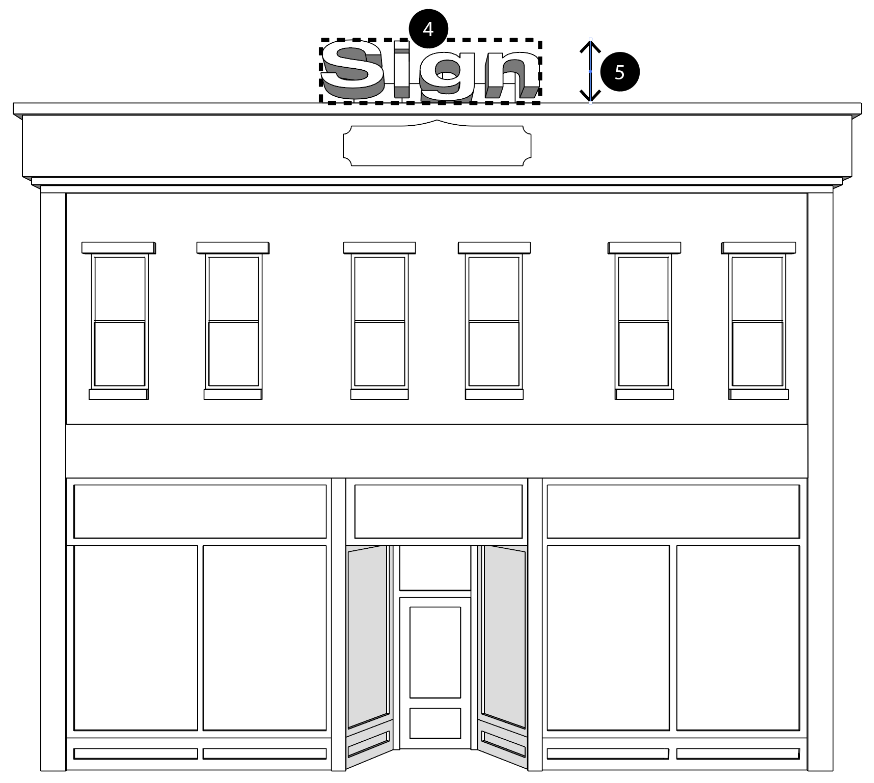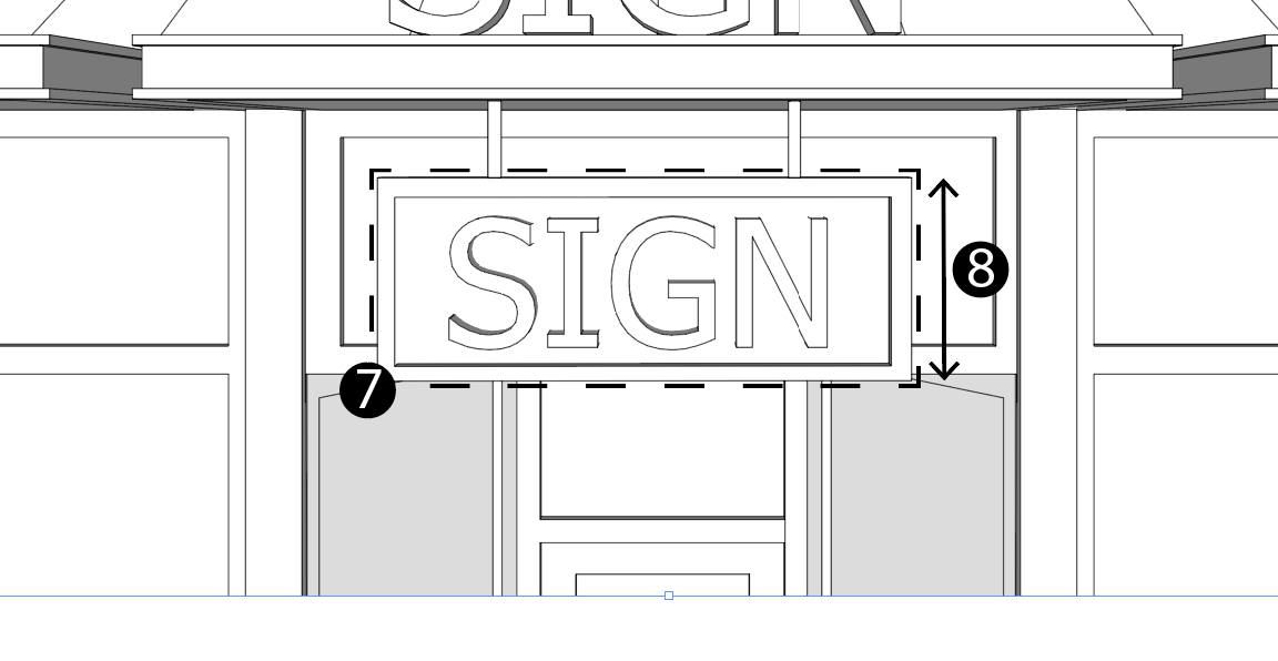 Sign Height: The vertical distance measured from the highest point of a sign to the lowest grade beneath the sign.