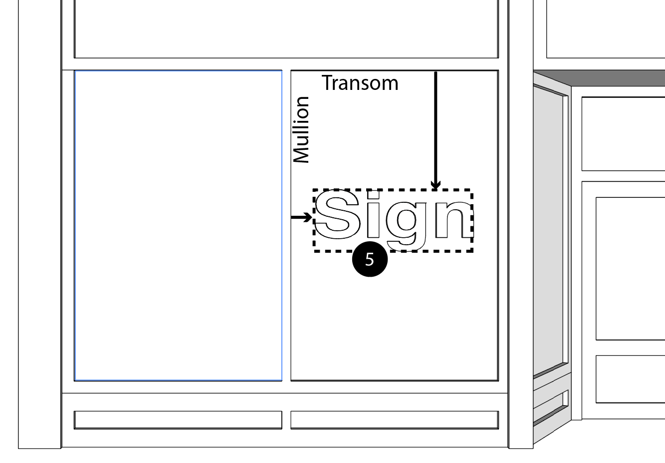 Transom: A horizontal element framed across a window.