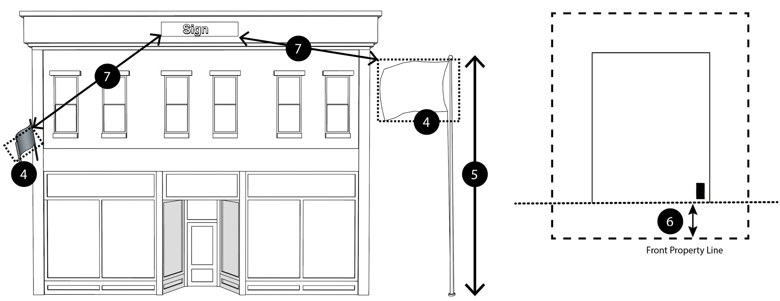 Property Line Setback: The required distance from any property line and a sign.