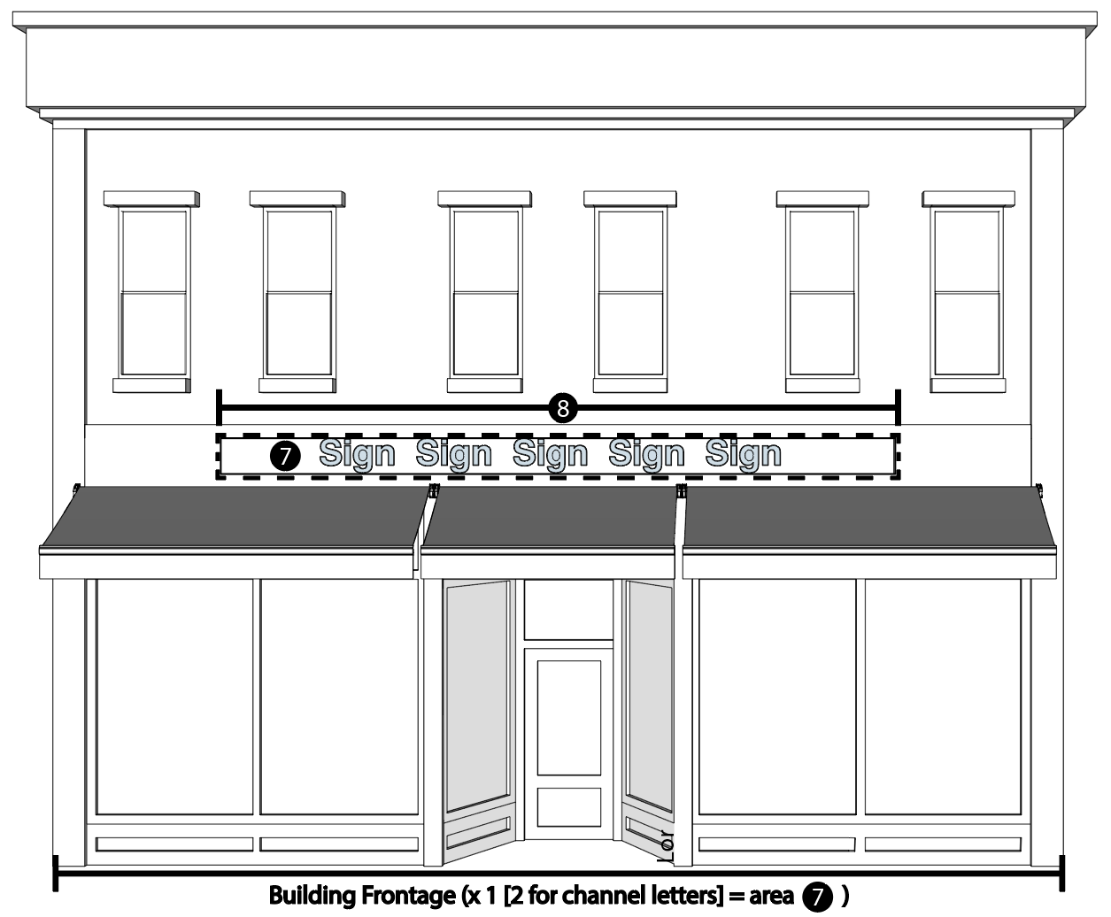 Frontage: The linear frontage(s) of a lot or parcel abutting on a private or public street that provides principal access to, or visibility of, the premises.