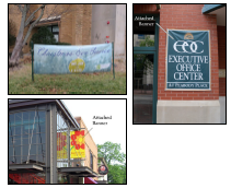 Abandoned Signs. A sign, including its structure, that is no longer used. A sign is no longer used if: (1) the business the sign advertises has closed; or (2) the property on which the sign is located is vacant or unoccupied for at least 90 consecutive days; or (3) no legal owner of the sign can be found. An abandoned sign is declared a public nuisance and is considered an illegal sign. This provision does not apply to permanent signs accessory to businesses that are open only on a seasonal basis if there is clear intent to continue operation of the business. This does not apply to public signs.