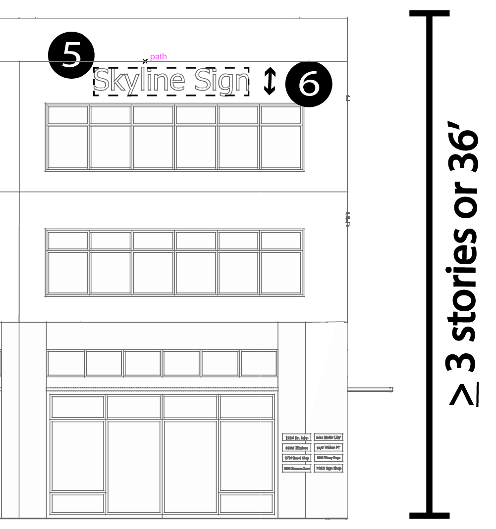 Skyline Sign: See Section 11-11-10(G), W.M.C. [That section states: "[a] sign that is placed above the windows of the highest floor of a building consisting of at least three (3) stories or 36 feet in height."]