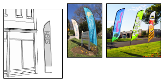 Feather Sign: A sign made of flexible material in the shape of a feather, quill, sail, blade or teardrop, and mounted on a solid or flexible pole or cord. These are sometimes referred to as "quill signs" or "sail banners."