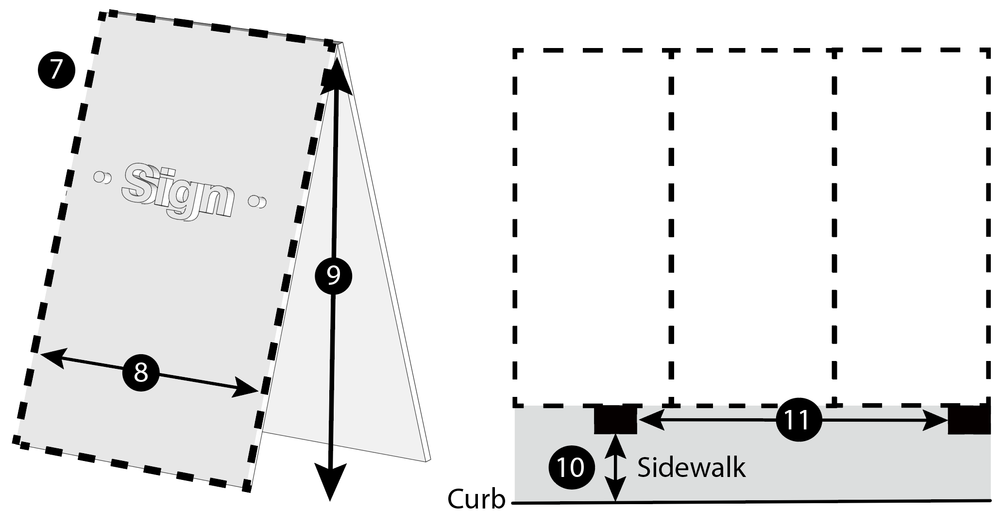Sandwich Board: See Section 11-11-9, W.M.C. [That section states: "[a] 'sandwich board' is a portable sign that is ordinarily in the shape of an "A" with back to back sign faces, an easel, or a similar configuration."]