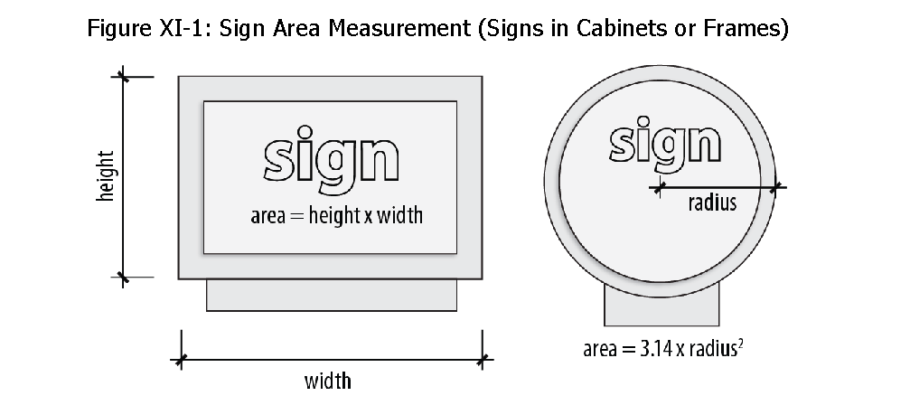 Signs enclosed in frames or cabinets. The area of a sign enclosed in a frame, box or cabinet is determined based on the outer dimensions of the frame or cabinet surrounding the sign face.