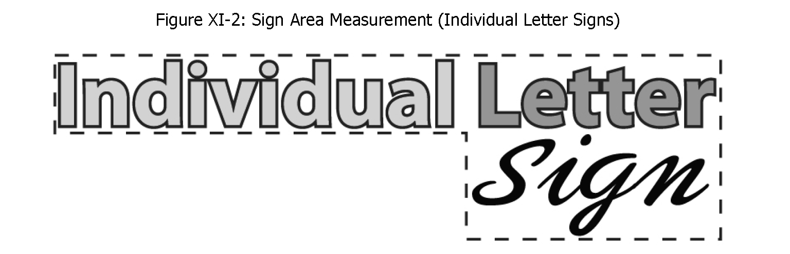 Channel (individual) letter signs. The area of a sign comprised of individual letters or elements attached directly to a building wall is determined by calculating the area of the smallest rectangular polygon that can be drawn around the letters or elements.