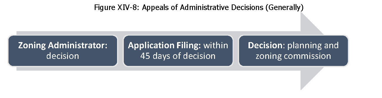 Appeals must be made by filing a notice of appeal with both the zoning administrator and with the planning and zoning commission. The notice of appeal must specify the decision that is being appealed and the grounds for the appeal.
