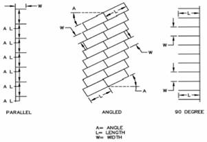 * For angled parking, rows with entrance to the spaces on both sides of the row from the same direction, if approach in opposite directions.