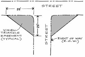 Purpose and Intent. To provide clear vision for motorists at intersections where the grade is not separated, there shall be a vision clearance triangle at the intersection of any streets with railroads, alleys, or nonresidential driveways.