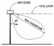 A graphic depiction of the lighting fixture lamp (or bulb) concealment and light cut-off angles;