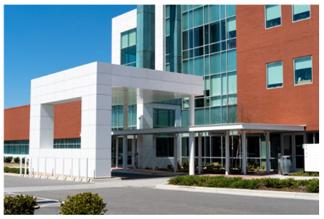 Parking garage façade. Must have 2 or more materials and have an architectural design that breaks-up the monotony of openings and shall compliment the style of the primary building.