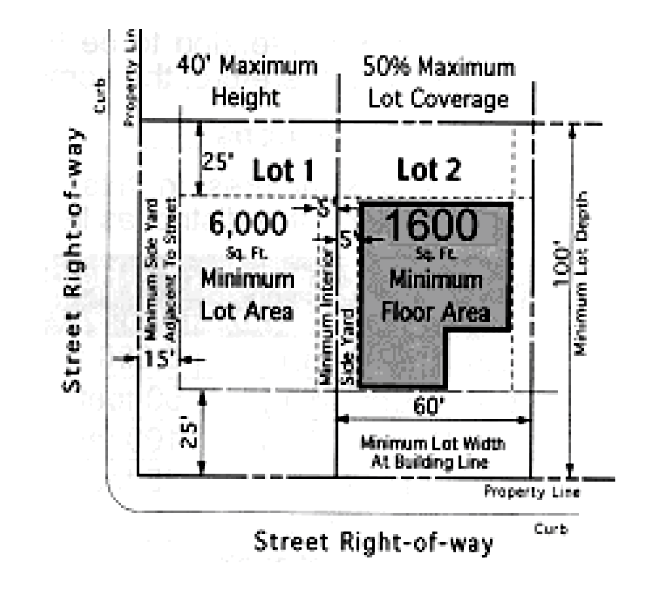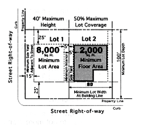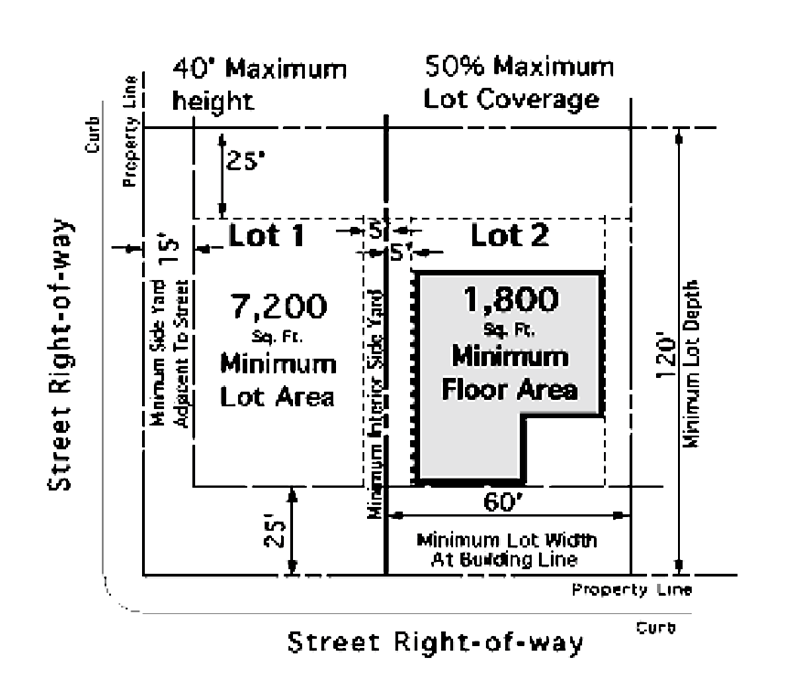 The area used for a single-family detached dwelling shall be not less than 6,000 square feet.