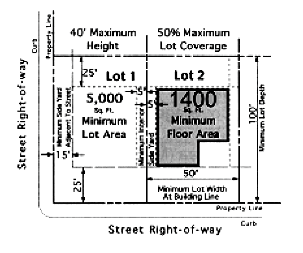 The width of any lot used for a single-family detached dwelling shall be not less than 50 feet.
