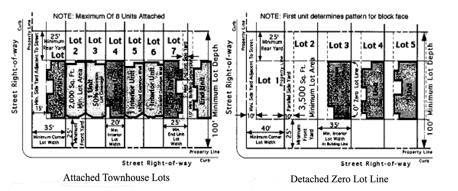 All area regulations for single-family, duplex, zero-lot-line, townhouse, or product other than multifamily, shall be governed by the district regulations providing for that land use type.