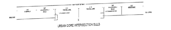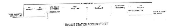 As a transit-oriented development, streets play a different role than in a traditional suburban neighborhood. Streets not only provide vehicular access to the development land uses and the transit station, but, more importantly, are a substantial part of the urban form, appearance and pedestrian nature of transit-oriented developments. The street section within a transit-oriented development is similar to a traditional downtown street. Parallel parking is encouraged and landscaped parkways and sidewalks are replaced with wide walks, curb to building frontages, with landscaping provided in tree grates and planters.
