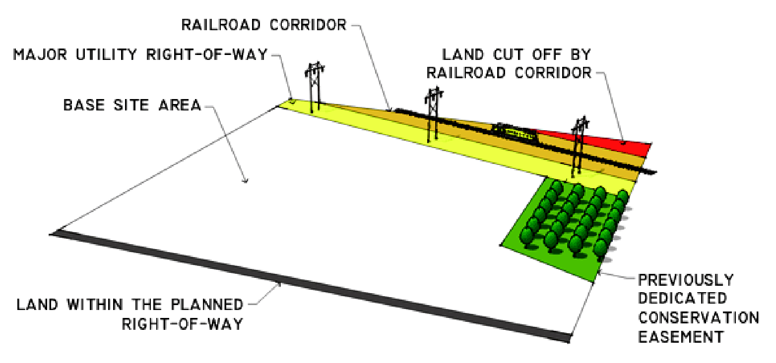 Calculation. Base site area equals the total area of the parcel proposed for development (gross site area), minus the sum of the areas of the following:
