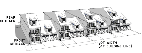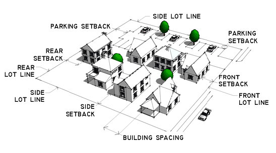 Generally. Setbacks are measured from lot lines towards the center of the lot, as follows: