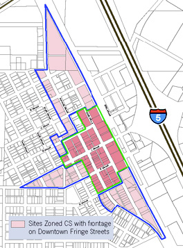 Linear frontage means the linear distance in feet that any parcel fronts on any city street, and shall not include alley frontage or Interstate 5 frontage.