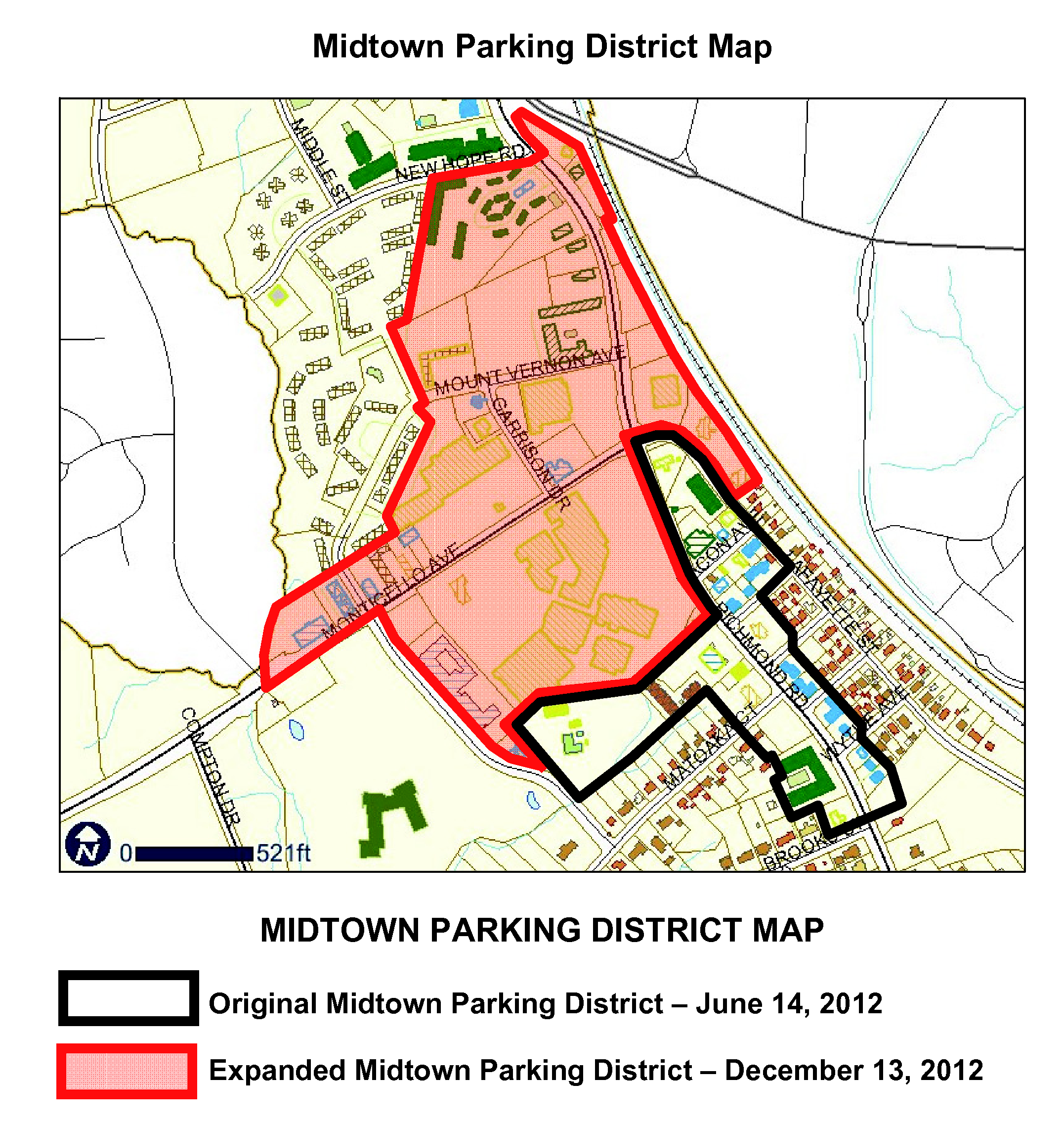 The boundaries of the midtown parking district are delineated on the official midtown parking district map, adopted on June 14, 2012 and amended on December 13, 2012. The official midtown parking district map, and all notations, references and other information shown thereon, is a part of this article, and has the same force and effect as if the official midtown parking district map were fully set forth or described in this article.