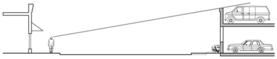 A vehicular clear sight zone shall be included at vehicular exit areas that includes a triangular sight area on each side of the exit defined by the following requirements (See Figure 14-7: Plan and 3-Dimensional Diagram of the Vehicular Clear Sight Zone.):