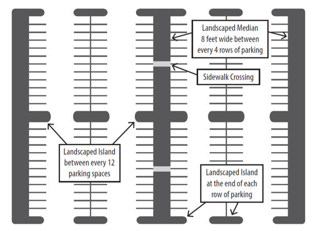 Driveways and parking areas are prohibited within the required perimeter buffer area, except for cross-access purposes.