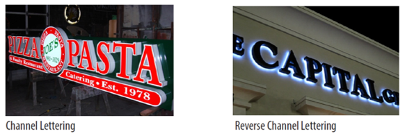 Only concealed external light illumination shall be permitted; internal illumination including channel lettering is prohibited.