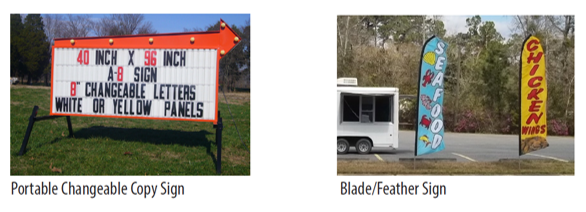 Portable signs. Temporary portable signs, such as A-Frame signs, sandwich boards, or other portable sign types which are not affixed to the ground or can be easily removed from the ground by hand without the use of tools, are permitted in accordance with the following provisions: